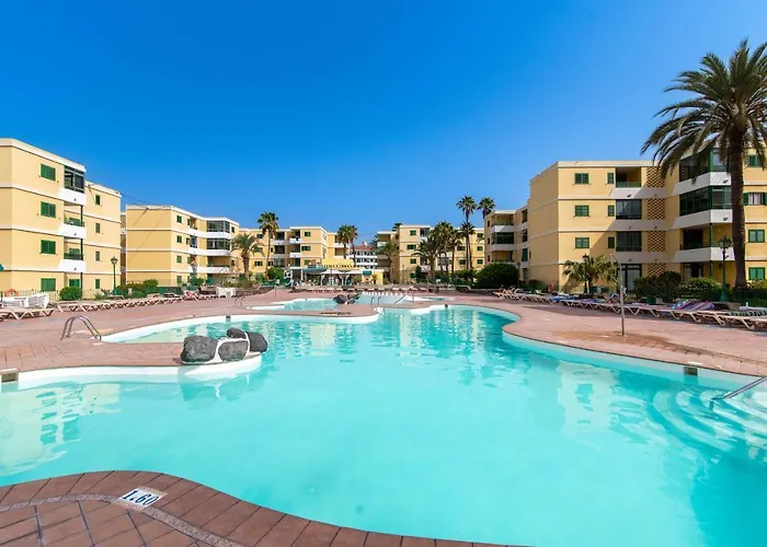 Bij Home2Book Colourful Apt Playa Del Ingles, Pool kunnen gasten gebruik maken van self-catering voorzieningen, waaronder een ingerichte keuken, en genieten van hun maaltijden in een eethoek buiten. Shopping Centre Plaza Maspalomas bushalte is op 250 meter ervandaan gelegen.